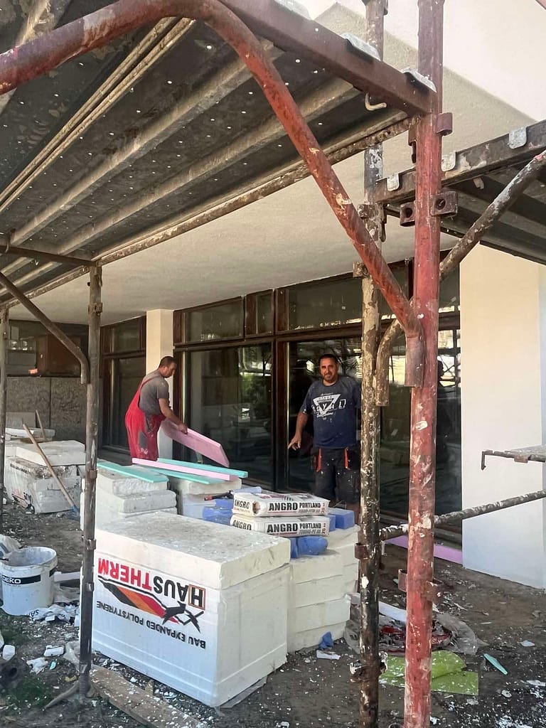 Работи се едновременно по фасадата и вътрешните пространства.